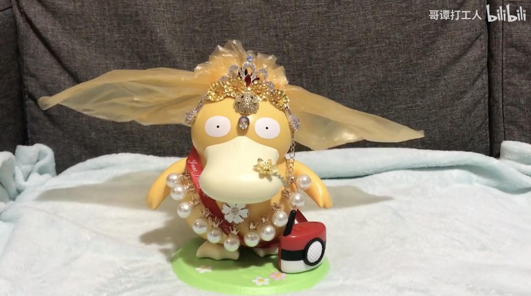 呆萌的可达鸭瞬间成了异国公主,只是一脸无辜的表情让人很难绷得住。