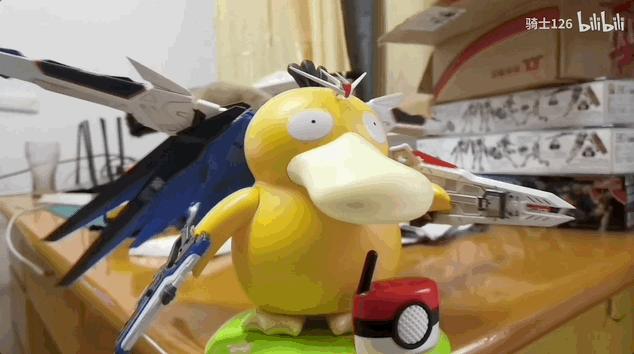 而手办达人UP主@骑士126,甚至把高达手办的配件拼接到了可达鸭的身上。