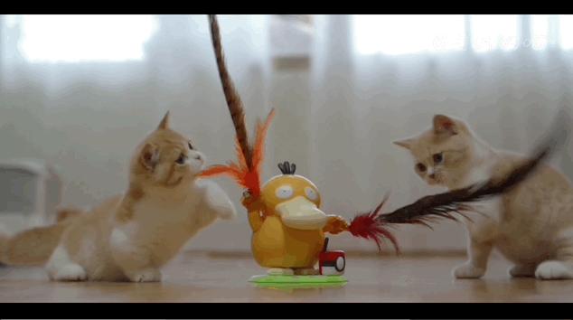 他在可达鸭的胳膊上贴了两根火鸡羽毛,一台自动逗猫机就全新出炉了。