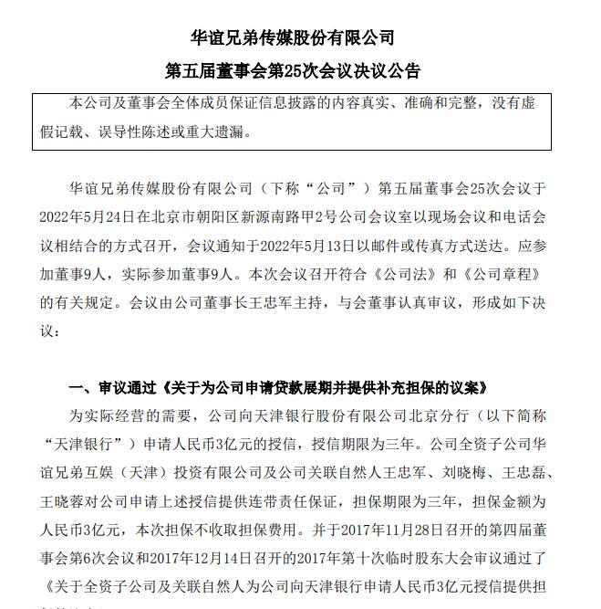 另值得注意的是,华谊兄弟第五届董事会第25次会议审议还通过《关于召开公司2022年第二次临时股东大会的议案》,该展期议案将在华谊兄弟6月9日召开的股东大会上审议。