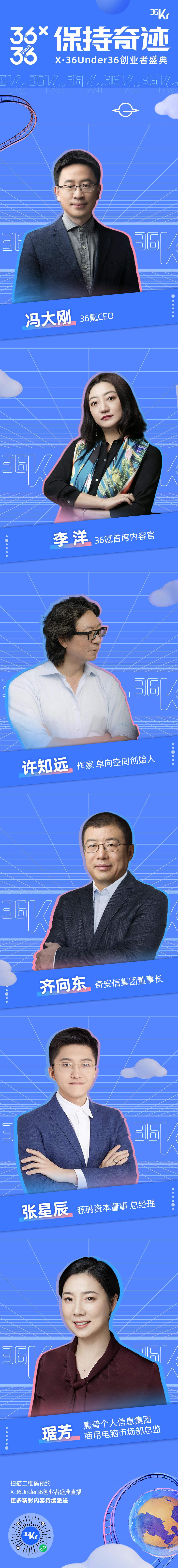 6月9日20:00,36氪将为乘风破浪的创业者们打造荣誉舞台——保持奇迹X·36Under36创业者盛典,一起回