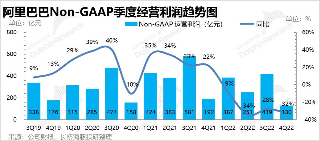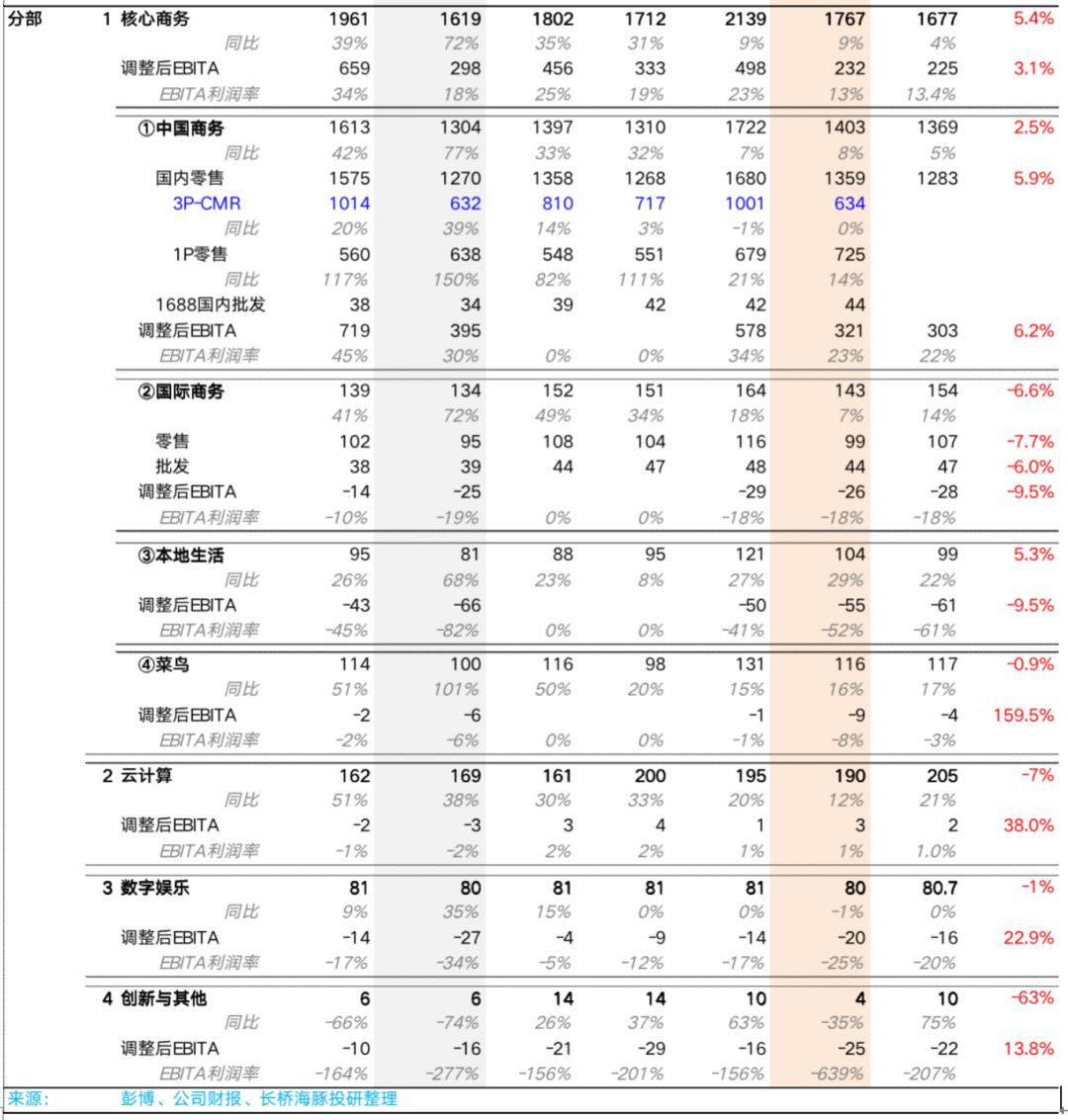整体上,不考虑股权激励和摊销的话,阿里利润158亿,超了市场的预期153亿。
