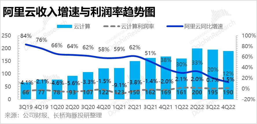 本季度阿里云收入190亿,同比增速12%,明显低于市场预期。而考虑到阿里是去年同期丢了海外短视频大客户TikTok,市场预期普遍在15%以上。阿里自己给出的解释是:宏观不好+互联网低迷+混合云项目疫情之下推进慢。