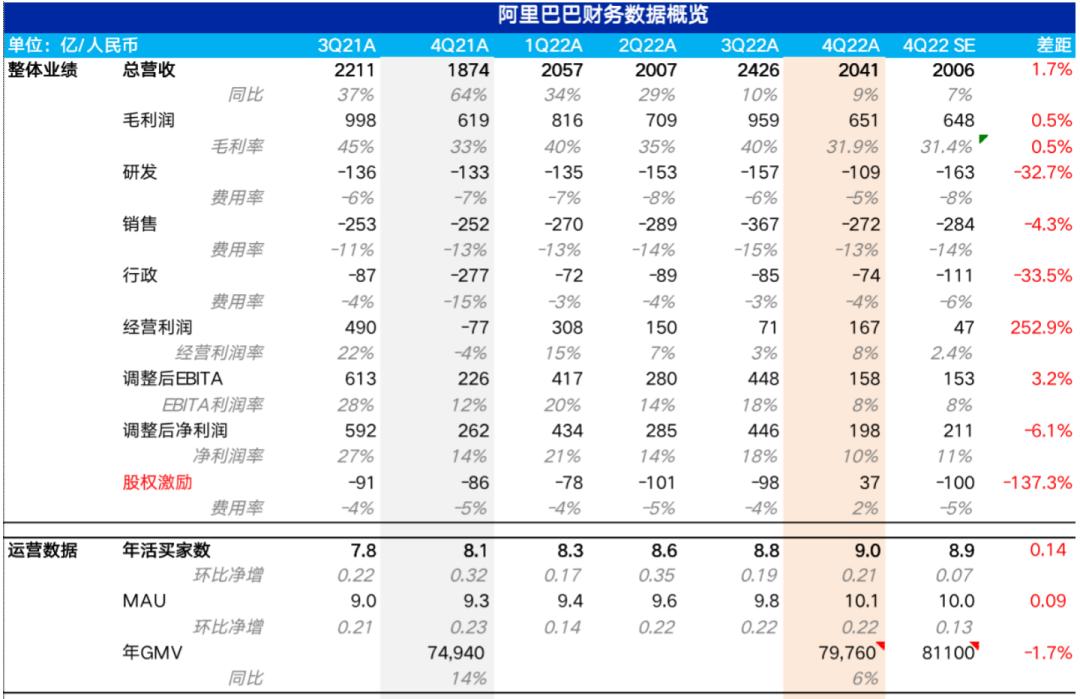 1. 收入过关了:本季度阿里收入2041亿,同比增长9%,小超市场预期的2006亿;
