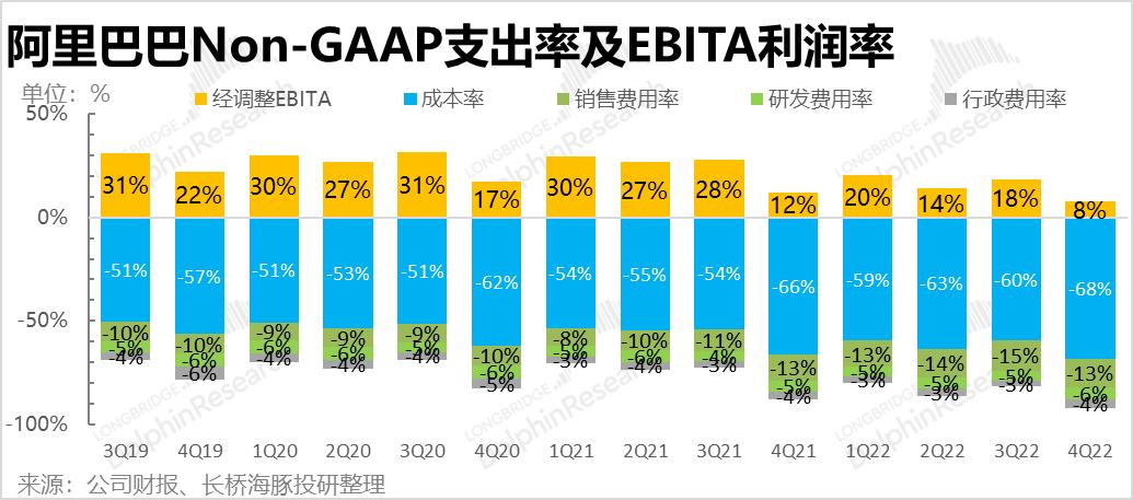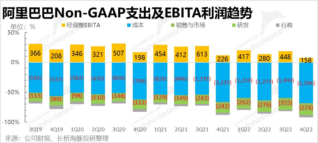 阿里这个季度的Non-GAAP EBITA利润158亿,利润率8%,稍微超出了市场预期。