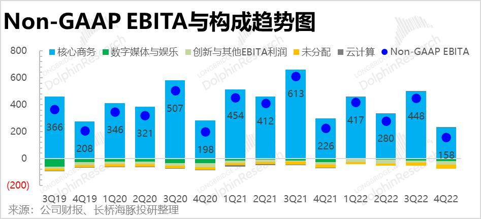 4. 利润过了及格线:市场最为关心不含股权激励和摊销的利润(Non-GAAP EBITA)是158亿,市场预期153亿,比市场预期稍好一些。