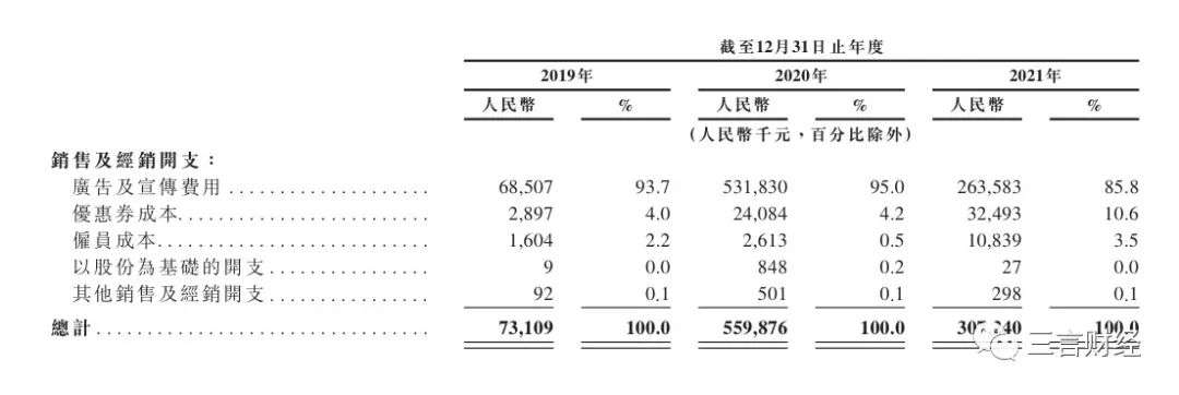 财报显示,微拍堂2019年至2021年三年中广告及宣传费用开支分别为6850万元、5.3亿元和2.6亿元。