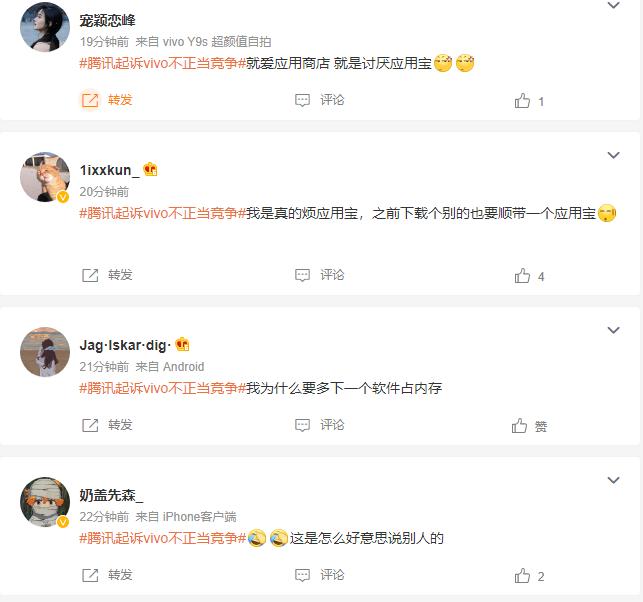 具体原因呢,就是 vivo 限制用户使用腾讯的应用宝,同时诱导用户使用 vivo 自带的应用商店。