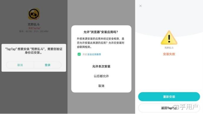 OPPO 手机更绝,使用 TapTap 下载“荒野乱斗”游戏,会要求输入账号密码验证身份才能安装,偶尔还会出现安装失败的情况。
