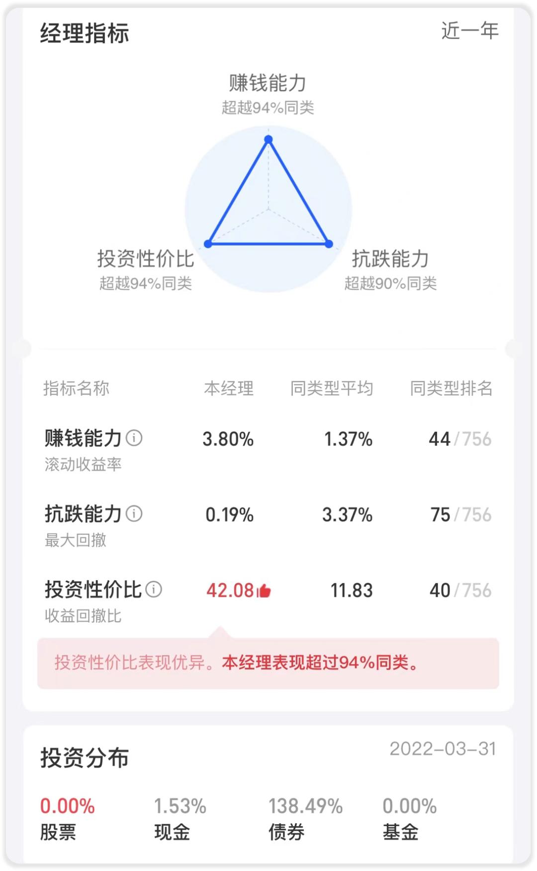 工具层面上,还是以蚂蚁财富为例,我们可以在基金经理页面,看到他们的能力圈,也可以看到基金经理的投资分布,以及夏普比率等指标——