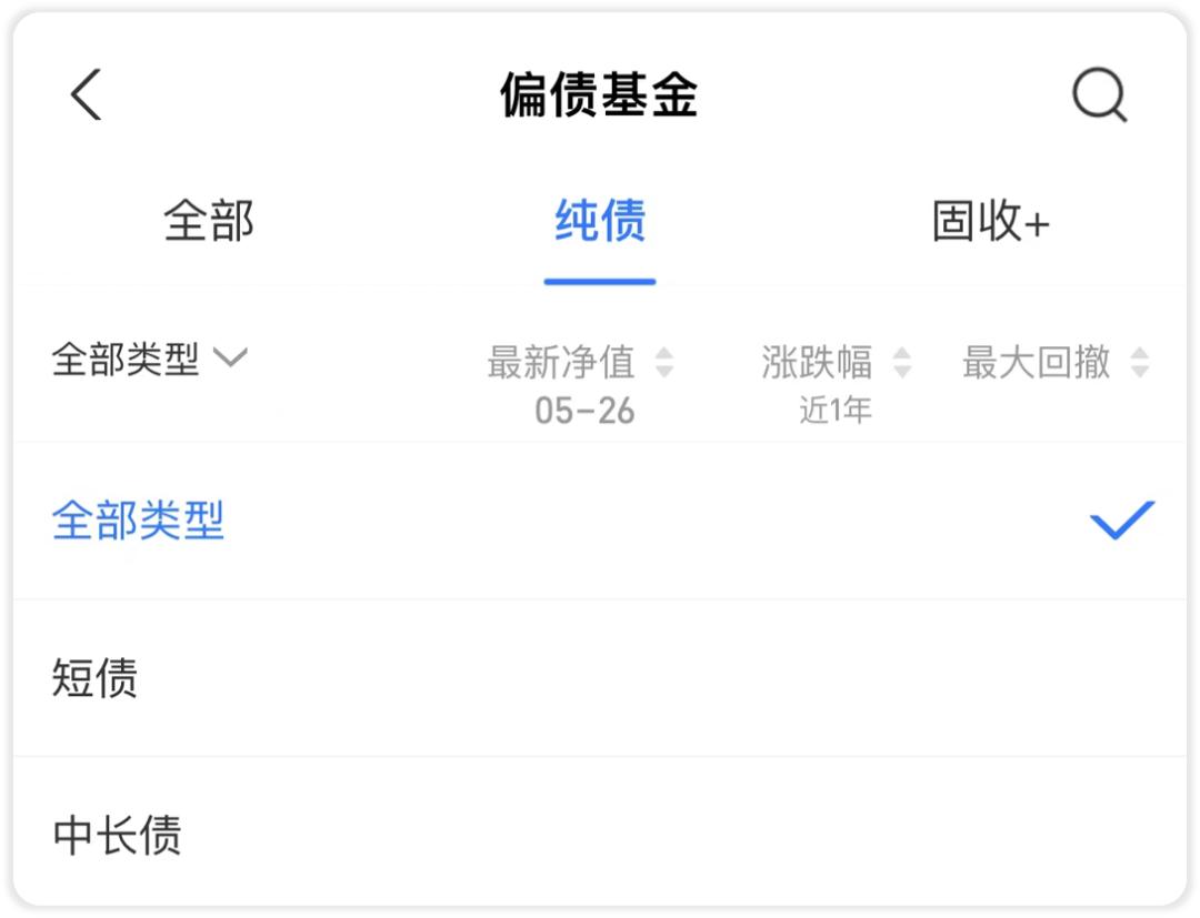 我们也可以通过各基金APP的筛选功能来筛出你想投资的债基类型。