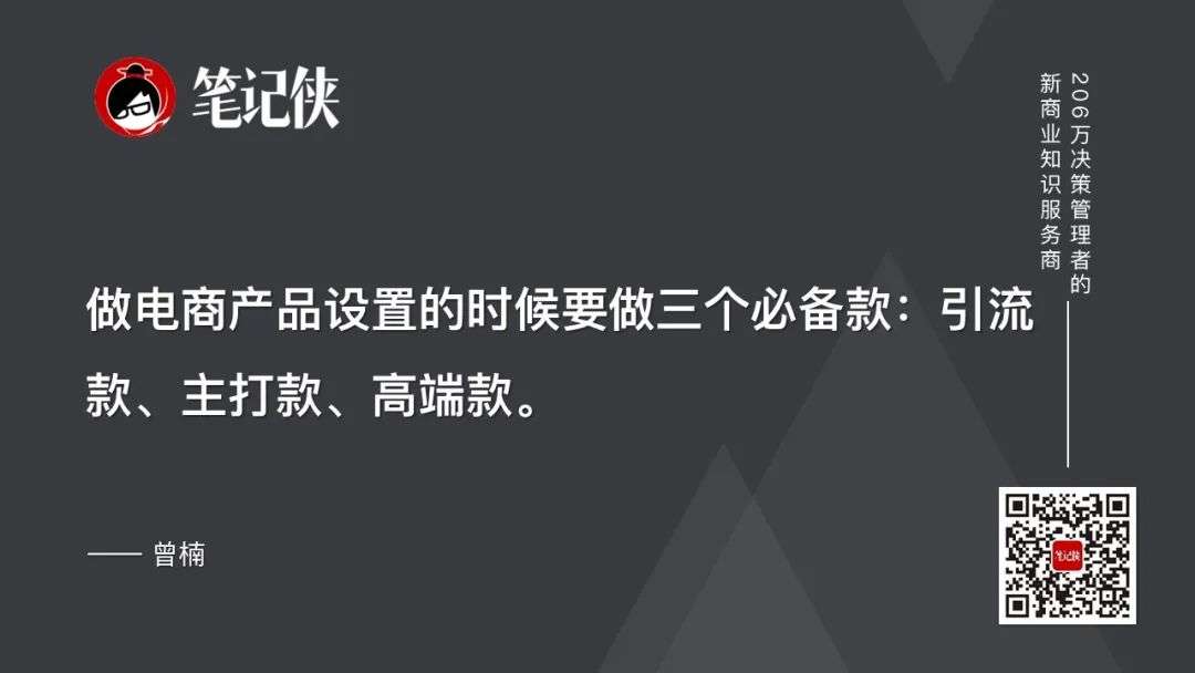 类似的,做电商产品设置的时候要做三个必备款:引流款、主打款、高端款。