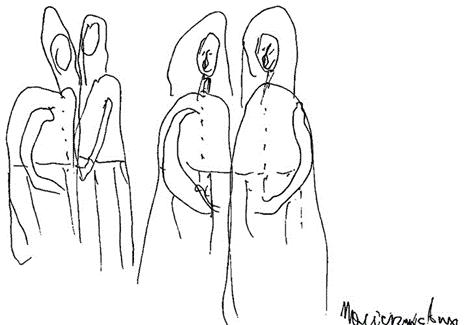 在发生车祸后的第3年,PA遇到过一位流产的女士。PA对她提出了非常专业的医学建议,并指出哪些药物可以用来治疗失去孩子后出现的抑郁症。不仅如此,他在一项“回忆童年记忆”的主题画中,画出了四位孕妇,并随后将画命名为“怀孕”。