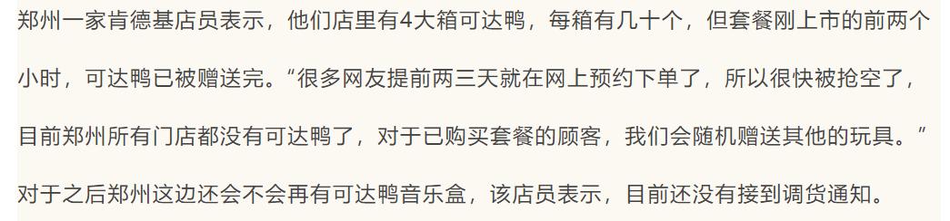 这是一年一度的肯德基六一套餐新赠品,套餐分为69元的双人餐与109元的家庭桶。常规操作“IP玩具+套餐”,怎么就在一夜之间变成顶流,几度冲上热搜、全网“一鸭难求”?