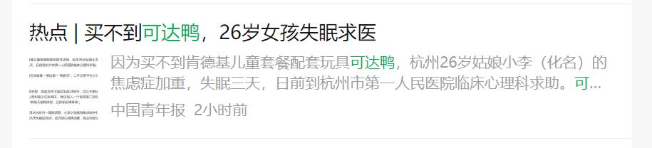 甚至有人因为抢不到可达鸭失眠求医。