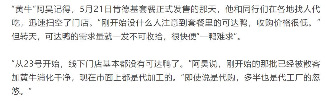 短短几日内,全网几乎买不到可达鸭,二手平台“鸭价”暴涨,代吃卷土重来。