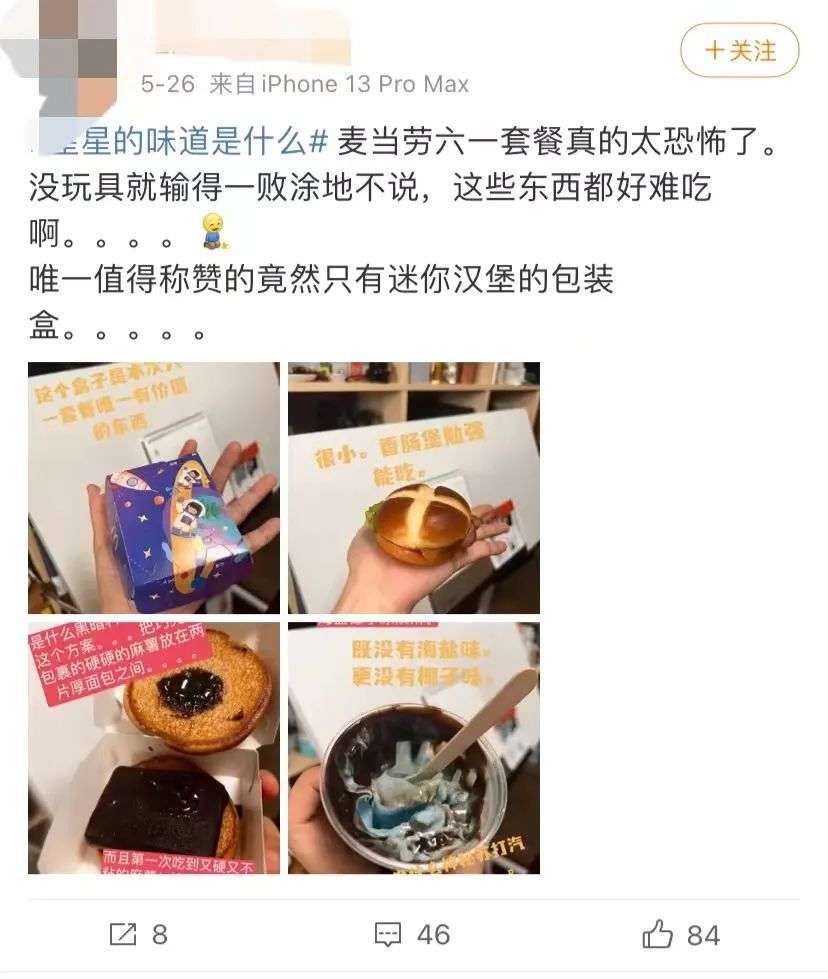 △网友对麦当劳六一套餐的吐槽