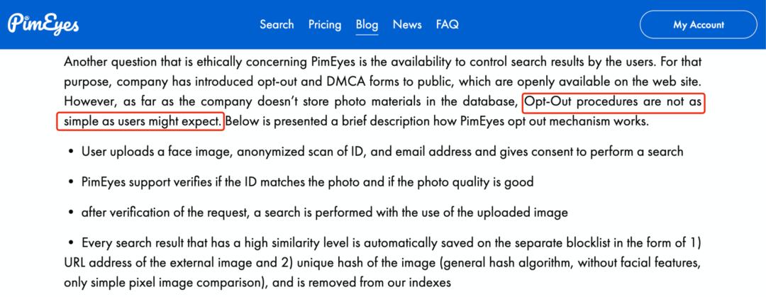 可能是因为之前没有太多人注意这个免费功能,此事一出PimEyes还专门写了博客,详细说明了这个下线功能如何使用。