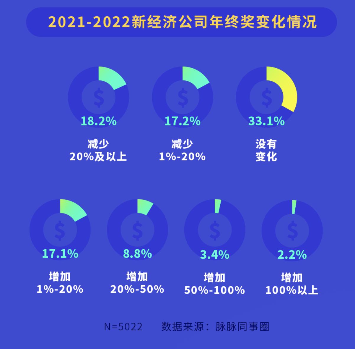 5月31日,脉脉同事圈发布了《2021-2022新经济公司年终奖观察报告》。报告重点关注了具备“互联网+传统行业”或“传统行业+互联网”特征的新经济产业,统计周期为 2022 年 4 月 15 日至 2022 年 5 月 27 日。