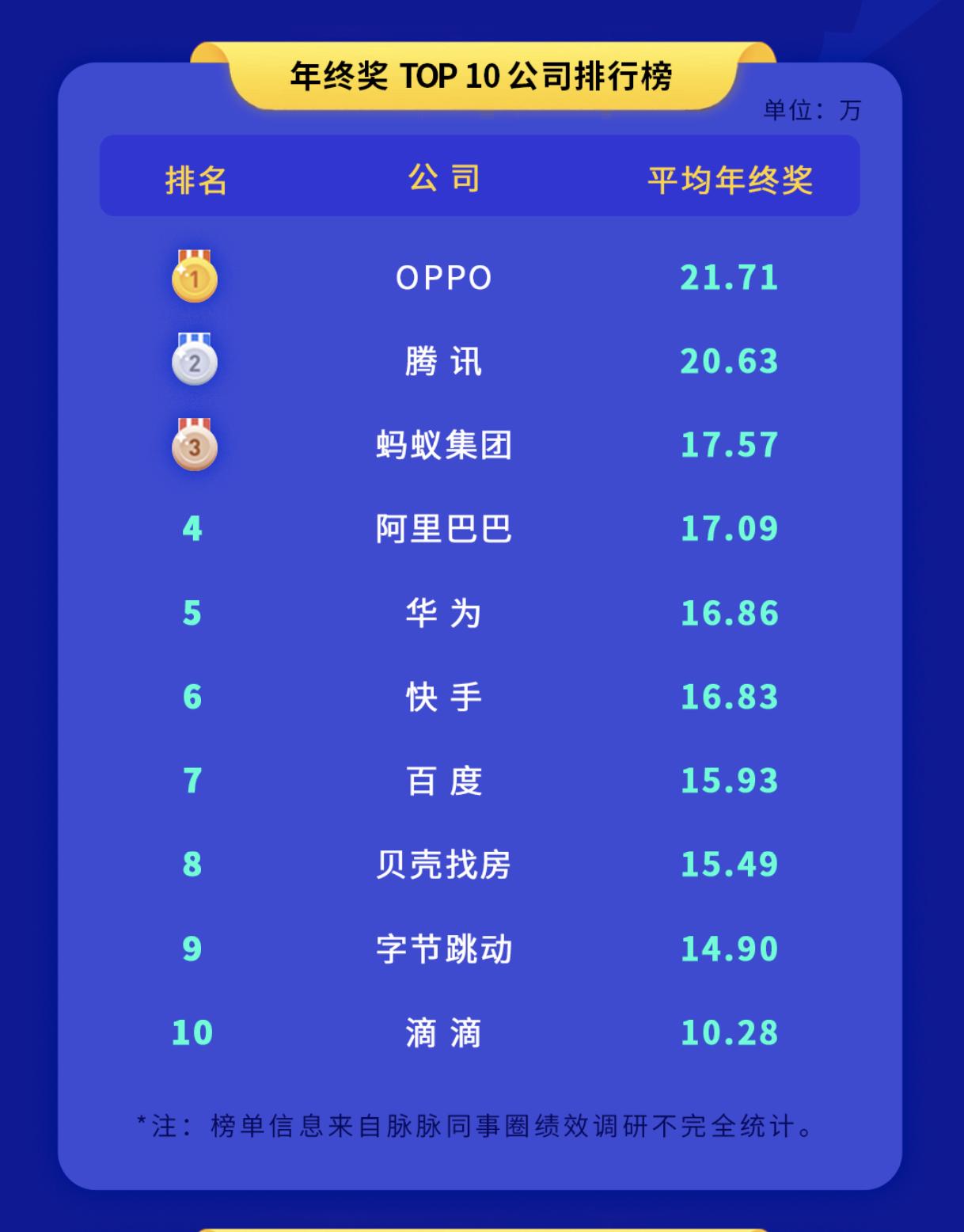 年终奖排行榜