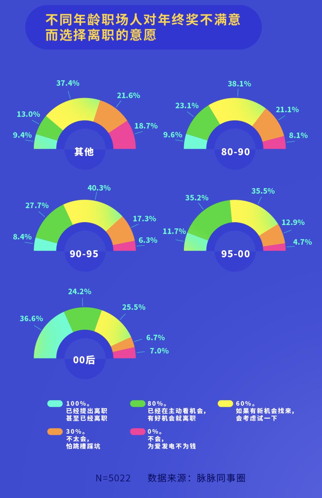00后因不满年终奖而离职的比例更高