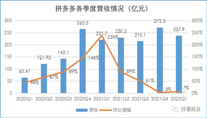 所以,这样来看,拼多多Q1同比增长7%的成绩算不上好。
