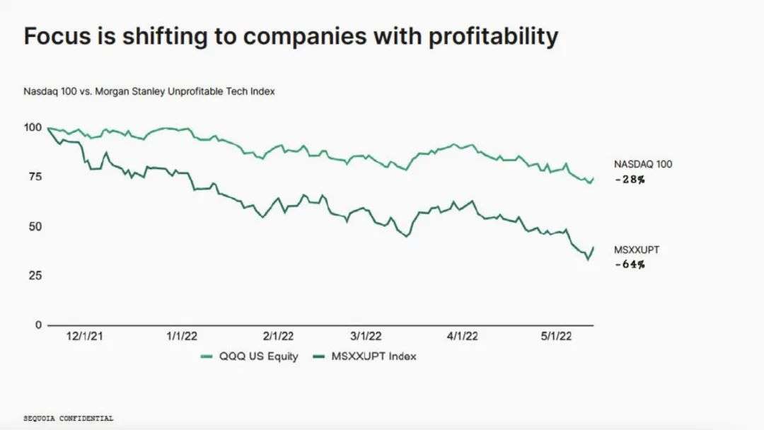 由于市场的这个变化,原来表现最好的资产,比如科技、生物科技、和一些新的 IPO 公司,变成了当下表现最差的资产。简单来说,就是这个世界在重新衡量当资本变昂贵时,什么样的商业模式是有价值的。