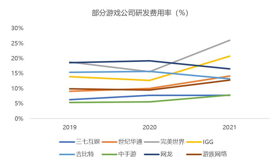 根据21年财报显示,一大批游戏公司正在加大研发费用投入,研发费用率也随着水涨船高。
