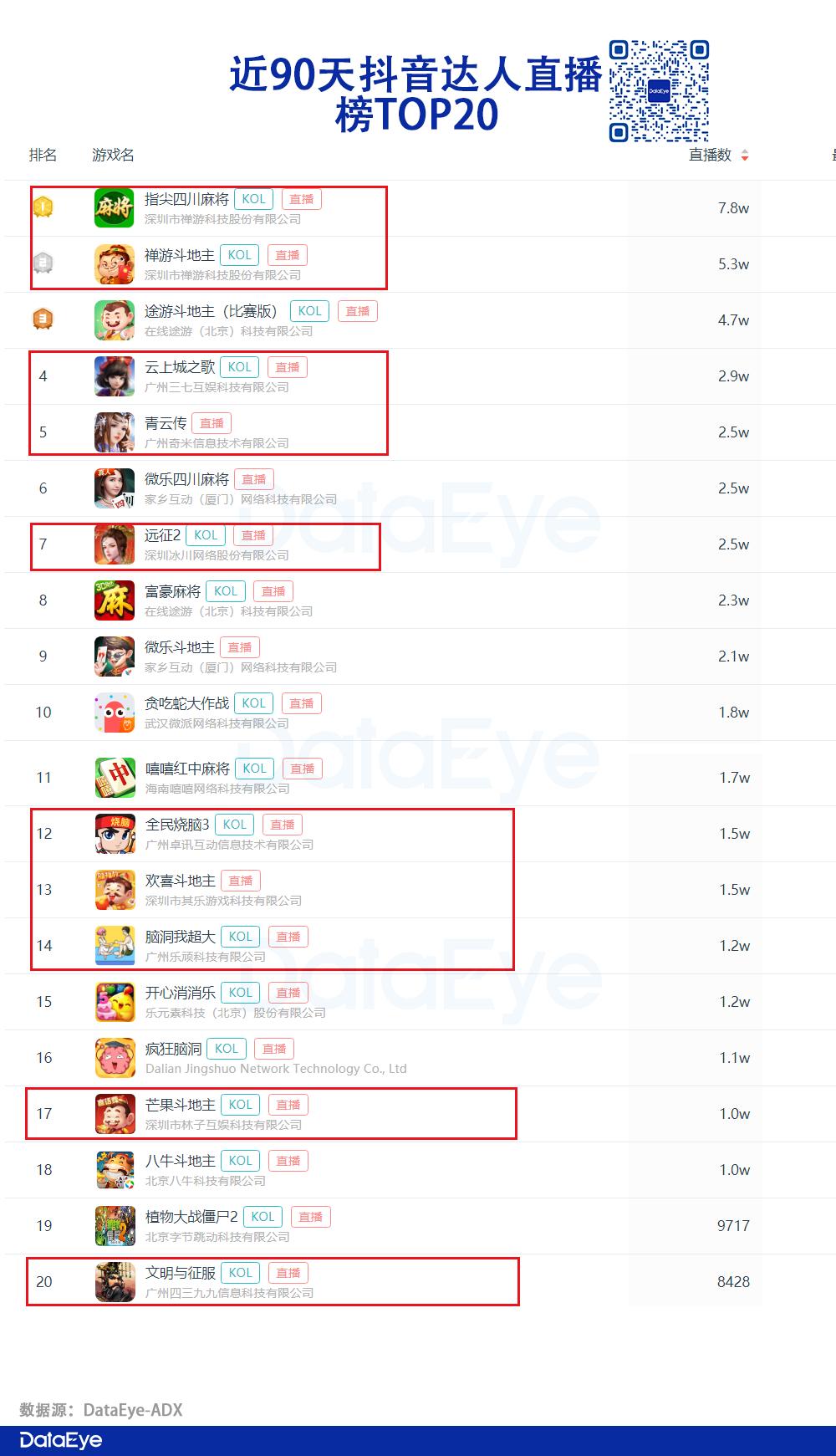根据DataEye-ADX达人营销数据显示,以近90天达人直播营销榜为例,广深地区的游戏公司占据了TOP20半数席位,足以看出上述公司对达人直播的重视。