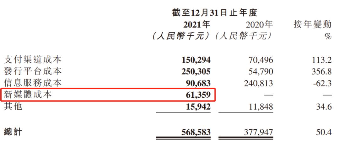 禅游科技在财报中还披露了新营销方式所花费的成本。21年禅游新媒体成本达6135.9万元,占销售成本总额的10.8%,此处的新媒体成本指的正是禅游在效果直播上的开销。