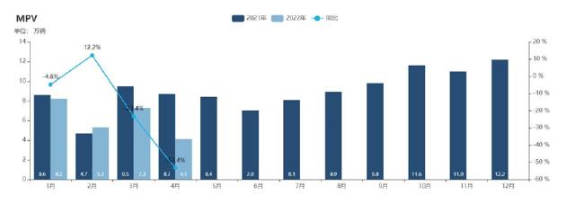 2022年第一季度,国内MPV销量下滑,但高端和低端的两极分化加剧。乘联会数据显示,一季度国内MPV产销双降。其中,20万元以上高端MPV销量为10.2万辆,同比上涨11.1%,15万元到19万元中端MPV销量为1.2万辆,同比增长155.5%,而14万元及以下的低端MPV销量为9.1万辆,同比降低27.6%。