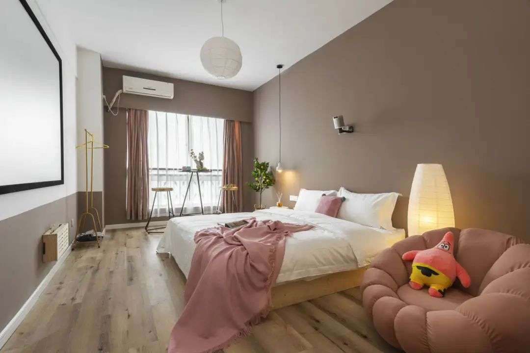 我本身是从事室内设计的,每间民宿都倾注了很多心思。比如有一套民宿是泡泡玛特盲盒主题的,房内布置了一整面墙400多个手办,花了4万多,其中有一整排全部都是很难抽中的隐藏款,花费1万多,最贵的一个就要1800元。这一主题的民宿应该算是国内独家,入住率非常高。还有一间是无印良品风,以木质家具为主,还布置了精油、香薰机等,也很抢手。