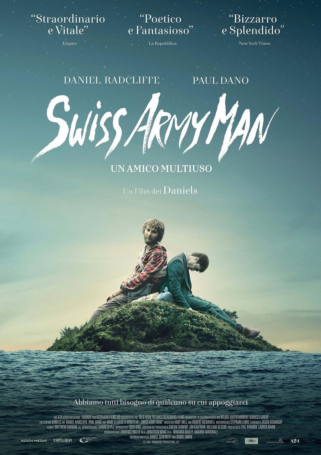 《瑞士军刀男》(2016)讲述一个被困在荒岛上的男人与一具尸体成为朋友,然后带着尸体踏上了返乡之旅的故事。