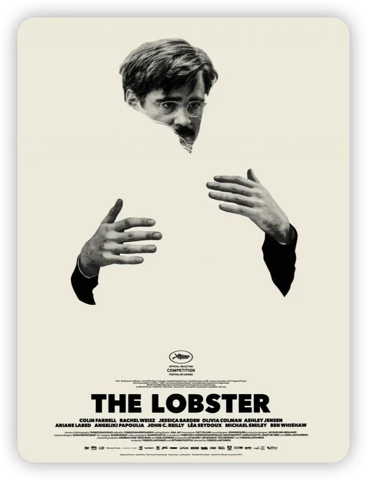 《龙虾》(2015)以寓言的形式,讲述未来反乌托邦社会中单身男女将被关进城中酒店,而且必须在45天内找到匹配的伴侣,失败者将变成一种自选的动物,流放进大森林的故事。