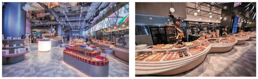 “奈雪的礼物”店铺特设了“礼物store”游戏区,消费者可以在这里靠消费积分抓取到限量潮玩、手办和联名产品;“奈雪酒馆Bla Bla Bar”专供鸡尾酒;奈雪梦工厂则是个零售面积超过700平米的大店,店内融合了各种消费概念,拥有烘焙、牛排、零售、酒吧、茶饮、咖啡、娃娃机等15个板块。