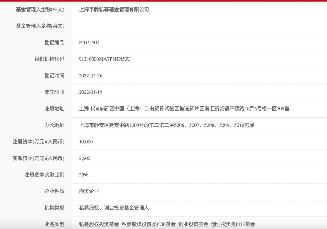 投资界--解码LP获悉,基金业协会网站信息显示,上海孚腾私募基金管理有限公司完成了备案登记,注册资本为1亿元,业务类型为私募股权投资基金、私募股权投资类FOF基金、创业投资基金、创业投资类FOF基金。