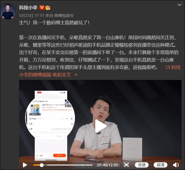2021年5月,ZEALER联合创始人@科技小辛 在微博上了曝光了带货网红卖山寨机一事。