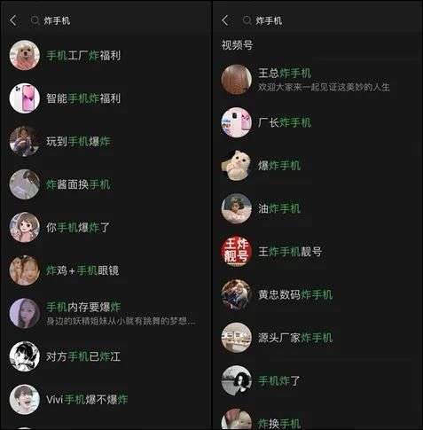 而新播场在微信视频号搜索“炸手机”关键词,确实也出现了大量与阿洲提到的类似的直播间账号。