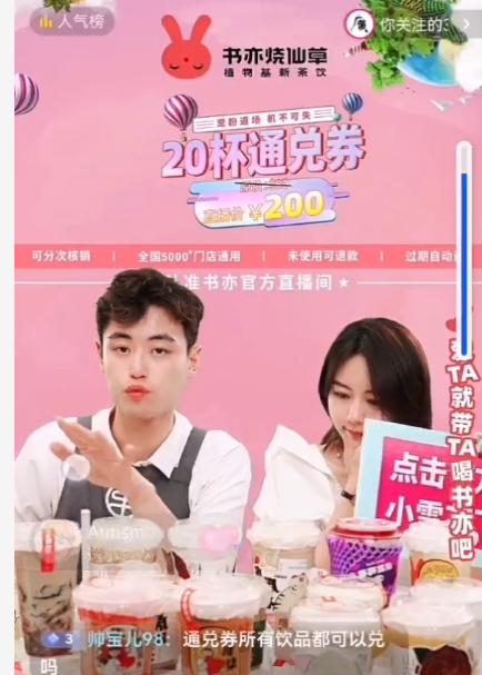 2020年疫情,奈雪的茶首次进入淘宝头部主播直播间开启茶饮品牌线上团购的先河,而后李佳琦、罗永浩的直播间中也有奈雪的身影。