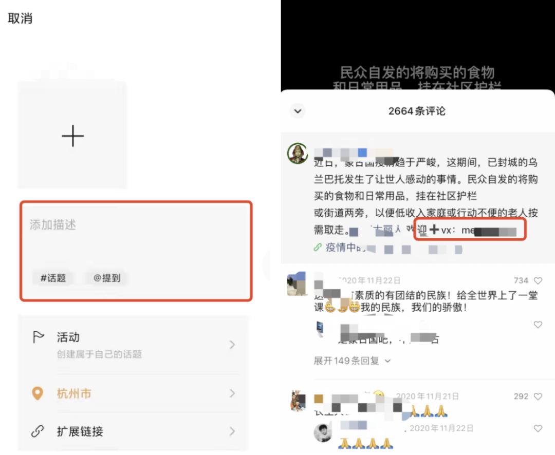 在评论区引流也是常见的一种方式。建议在作品的第一个置顶评论里不要直接放联系方式,这样做的风险很大,可以在后面几条点赞高的评论里选取一两条,隐晦的留下联系方式。