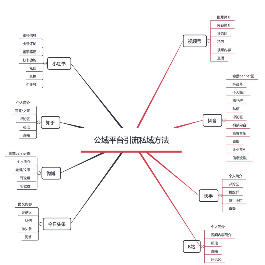 下面我盘点了视频号、抖音、B站、快手、小红书、知乎、微博、百度系8大公域平台,整理了49个私域引流技巧,分享给大家。