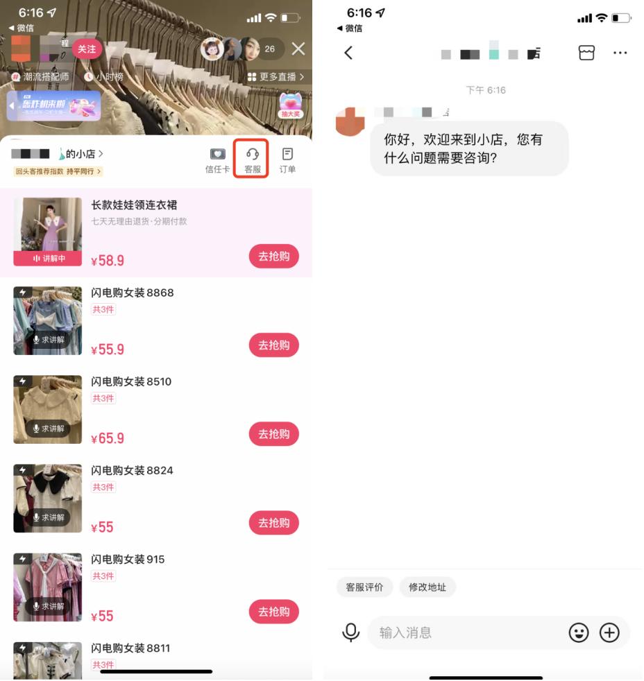 快手的店铺可以设置客服功能,用户进入小店页面可以联系客服,客服再引导用户添加私域。