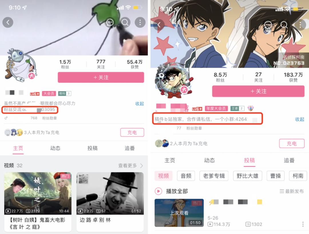 B站的简介内可以写上粉丝群号、微信号、邮箱等信息,通过合作、交流的方式引导用户进入私域。