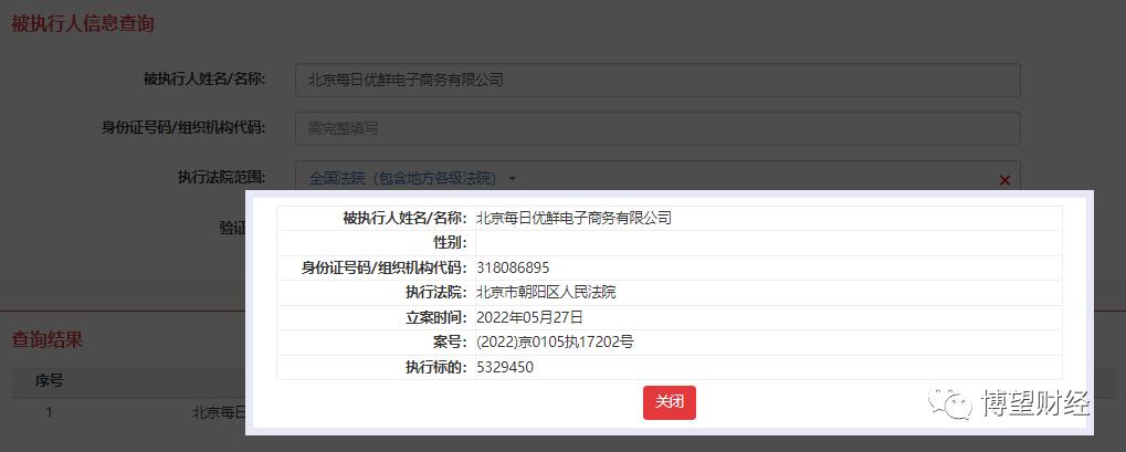 另据中国执行信息公开网显示,每日优鲜新增1则标的金额532.95万元的被执行人信息,执行法院为北京市朝阳区人民法院,案号“(2022)京0105执17202号”,立案时间2022年5月27日。