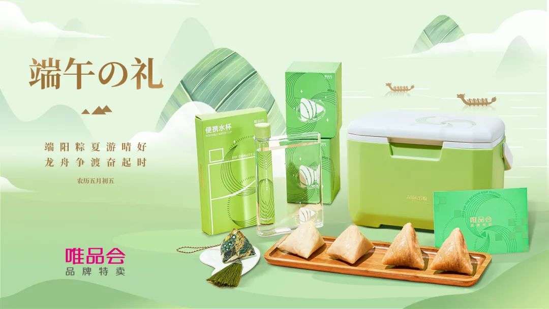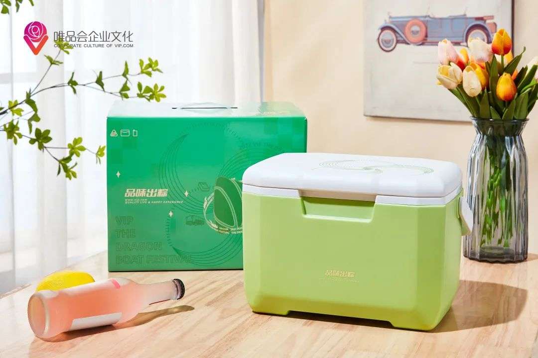 唯品会「品味出粽」端午礼,外箱是一个便携保温箱,很适合户外用来存放冷饮。里面还有粽子、运动水壶、陶陶居联名粽子、以及传统香囊。