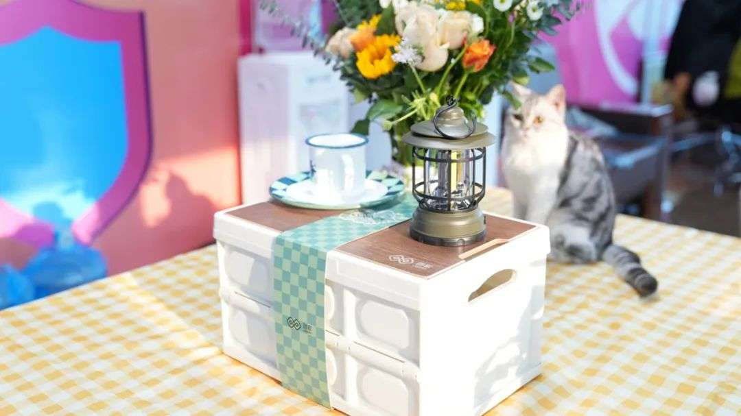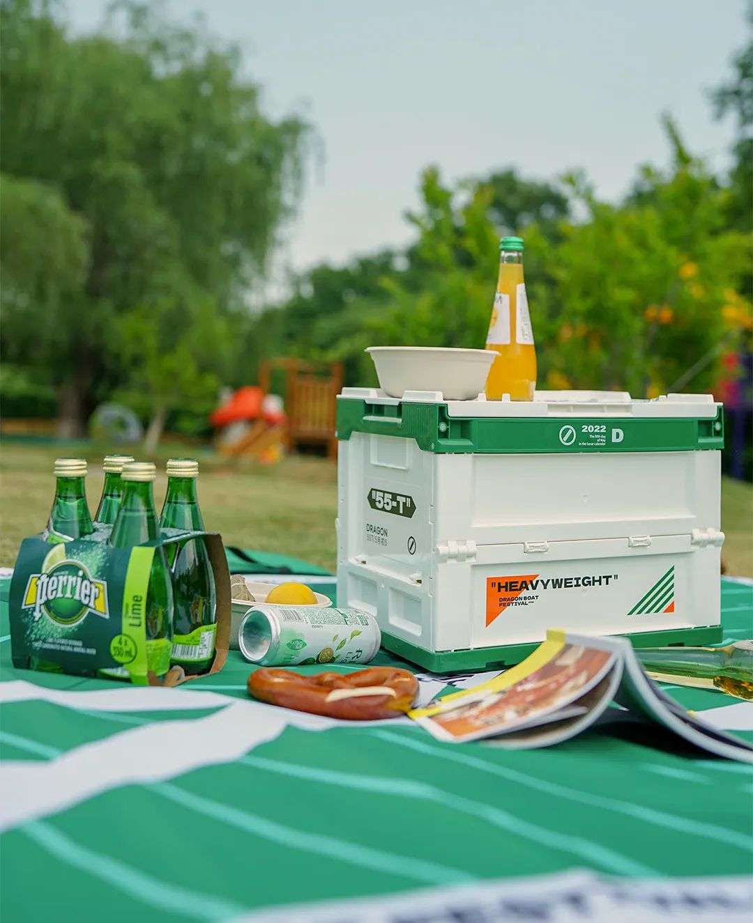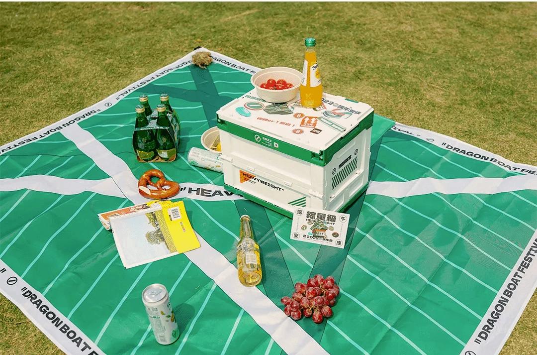得物也做了露营的礼盒,便携式收纳盒+防潮布,很时尚,也很实用。
