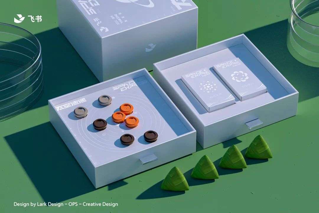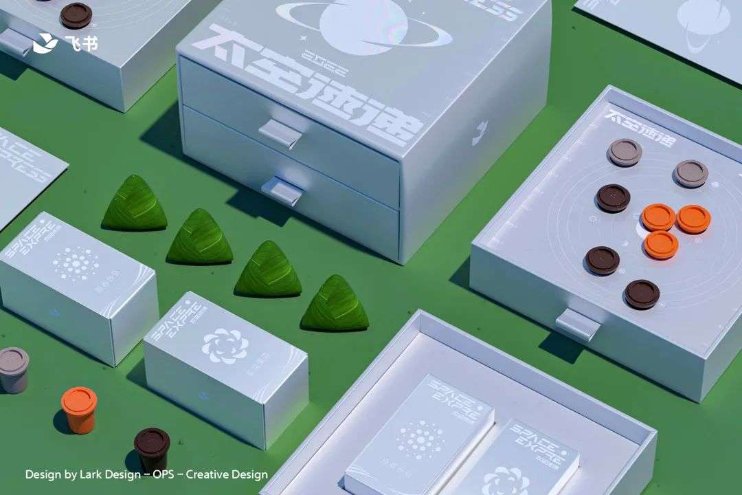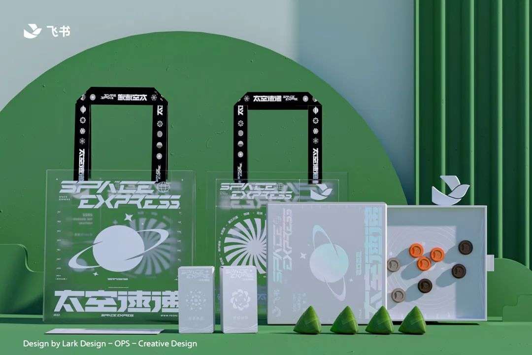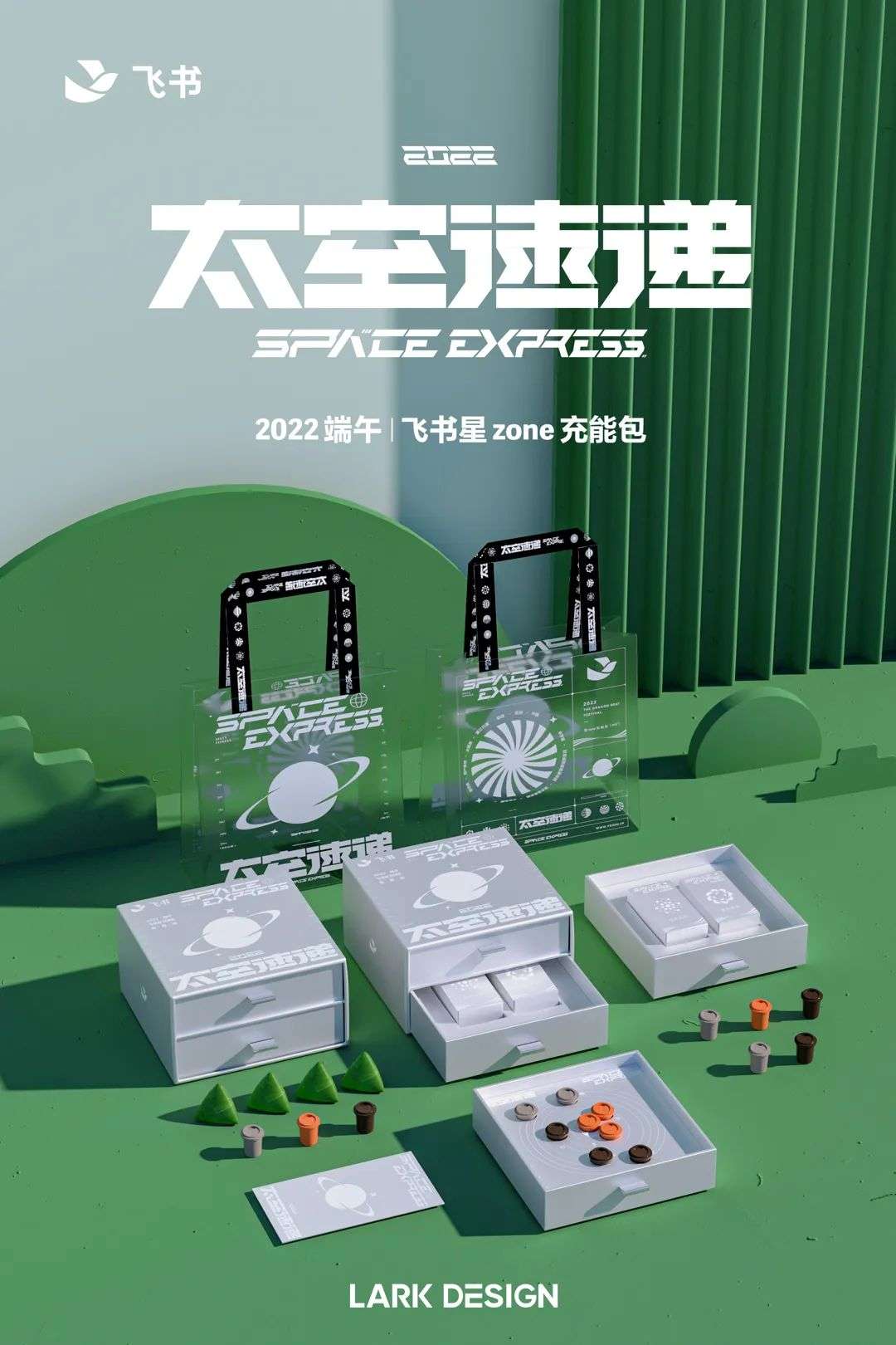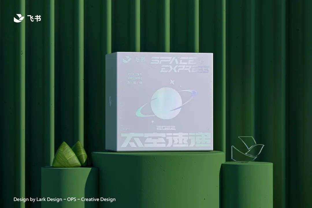 飞书的端午礼盒以“太空速递”为概念。整体采用双层包装,抽拉式设计,配以未来感爆棚的宇宙元素和太空银配色。