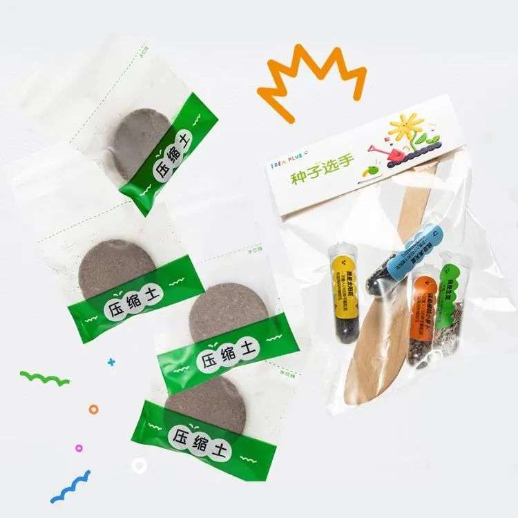 字节跳动的端午礼盒,粽子从来不是主角,这次的主题是种菜,不仅有种子、压缩土壤和环保花盆,四款种子能种出樱桃小萝卜、生菜、满天星和太阳花,让你在家里就能种菜吃。在白色的外包装上,你还可以随意涂鸦。