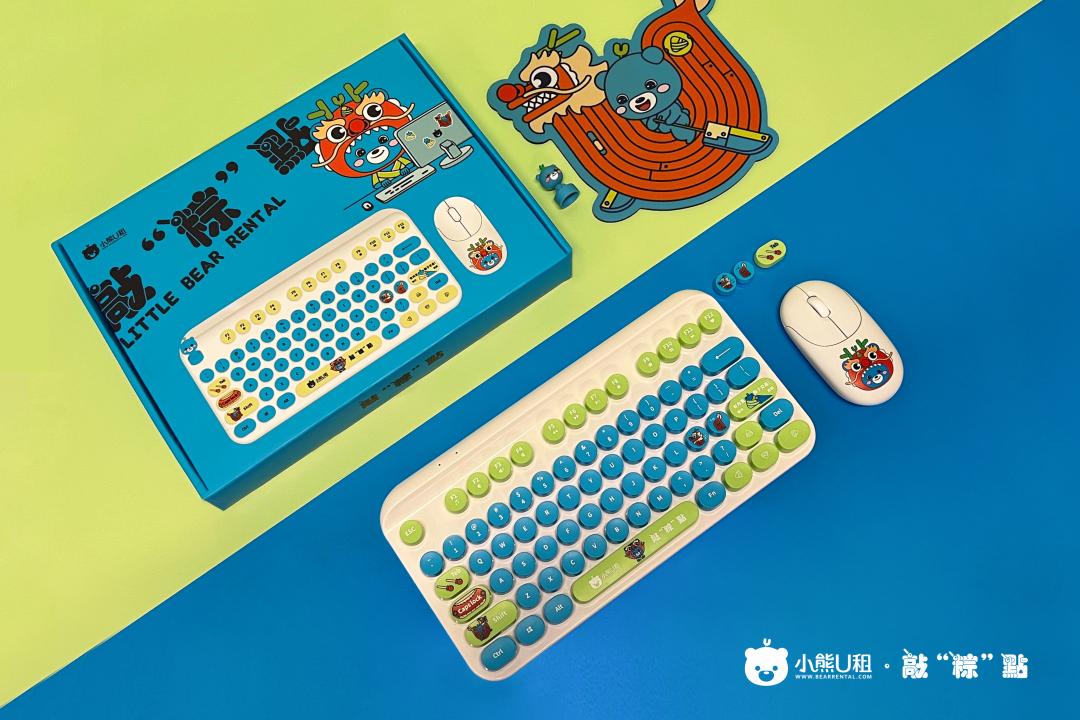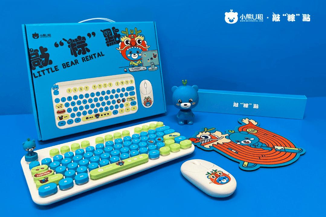 小熊U租「敲粽点」端午礼盒,将敲键盘的动作与端午元素结合,一整套端午主题的键盘,增加了办公场景的趣味性。