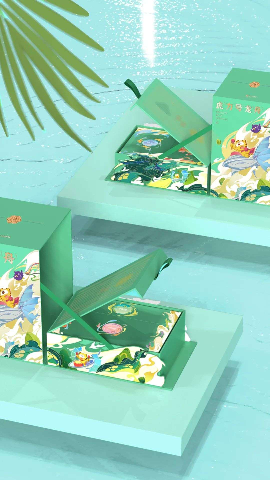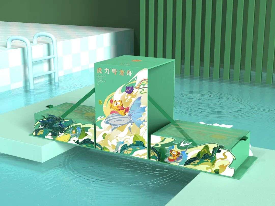 虎牙2022端午礼盒以“虎力号龙舟”为主题,象征着“粽心向前,火力全开”的进取精神,礼盒以桥梁结构为创意,是多向奔赴、连接世界的最佳表达。